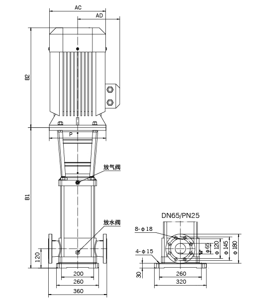 進出口口徑: DN25 DN32 DN40 DN50 DN50 DN50 DN65 DN80 DN100 DN100 DN125 DN125 DN150