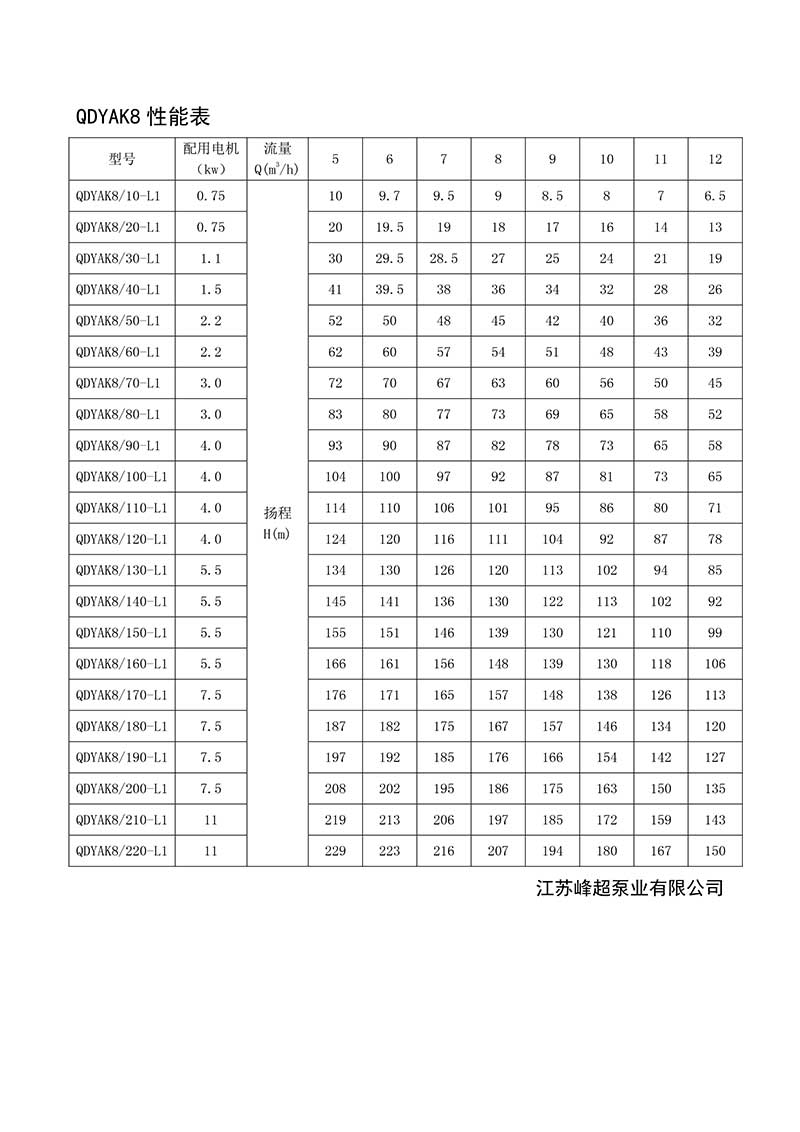 QDYAK8機床高壓泵性能和安裝尺寸: